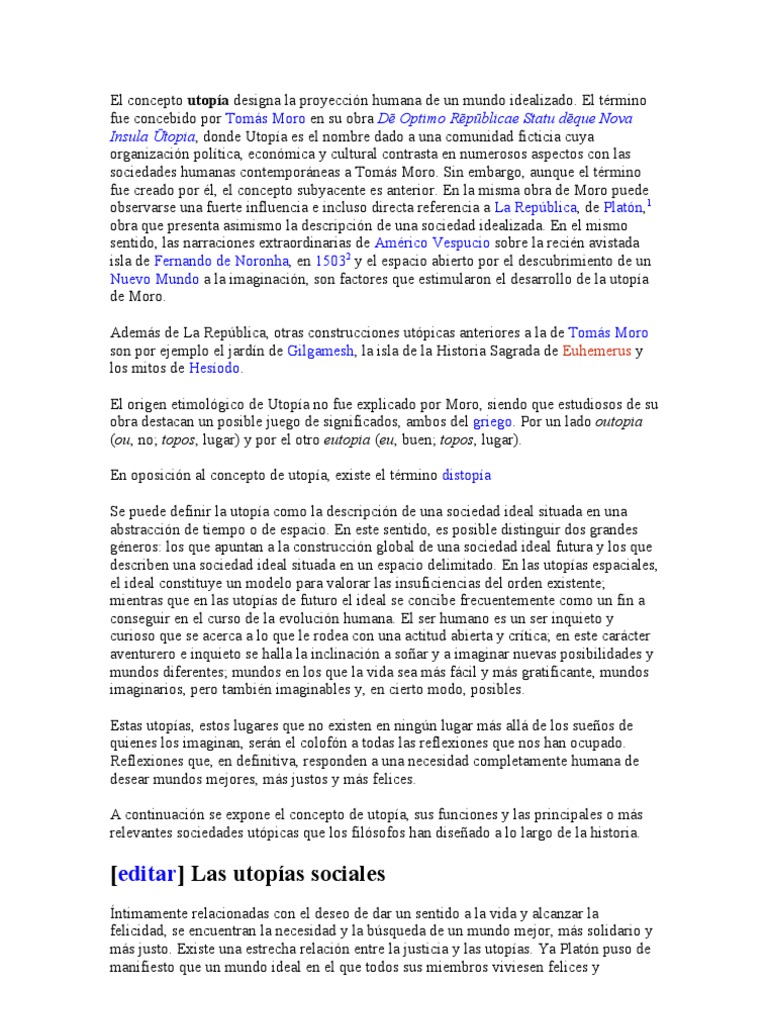Que Es Una Utopia Ejemplo