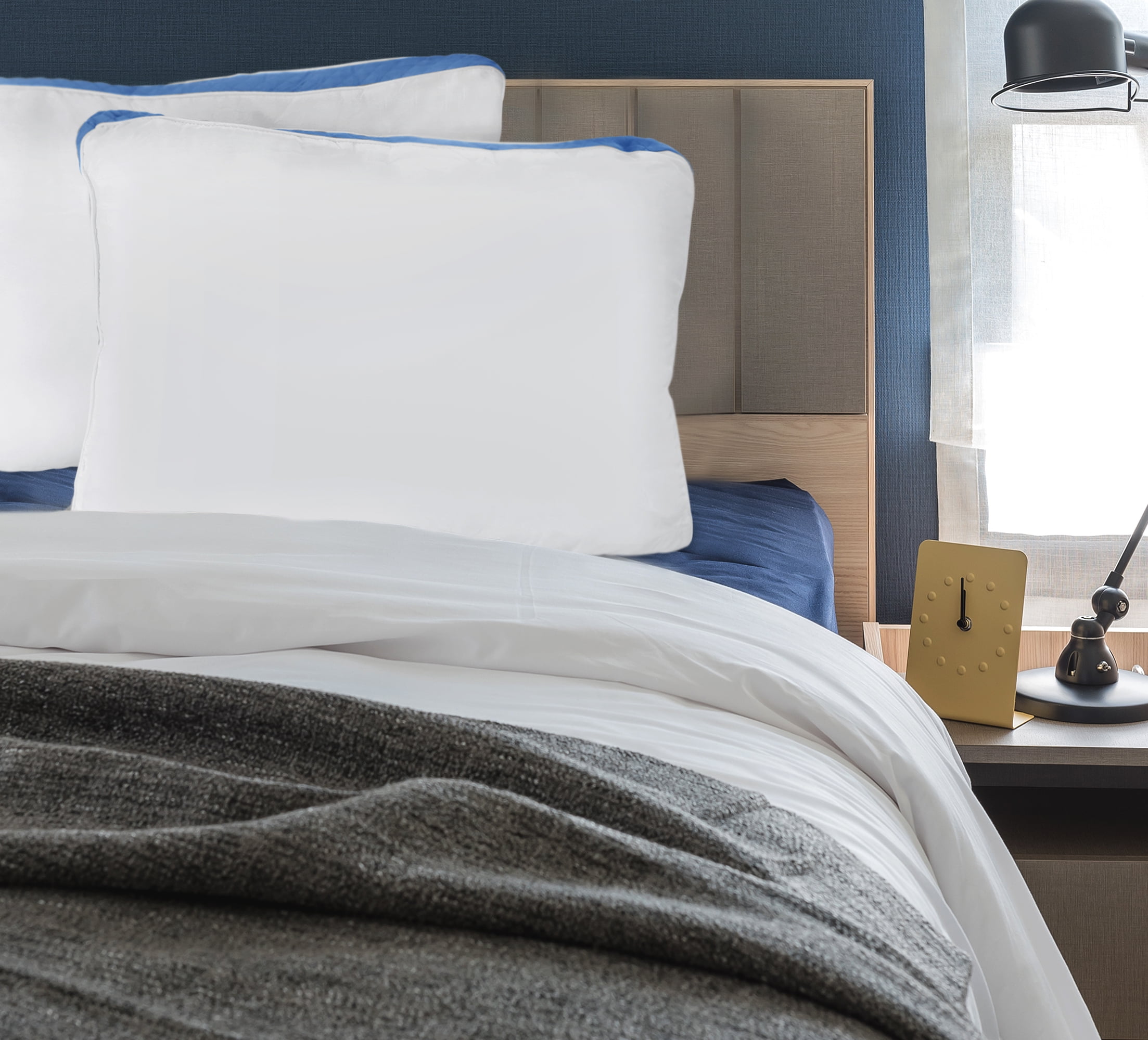 Read honest and unbiased. While the pillow is white it has a beautiful piping design that is almost an inch wide throughout. Utopia bedding gusseted quilted pillow 2 pack premium quality bed pillows side back sleepers blue gusset queen 18 x 26 inches.