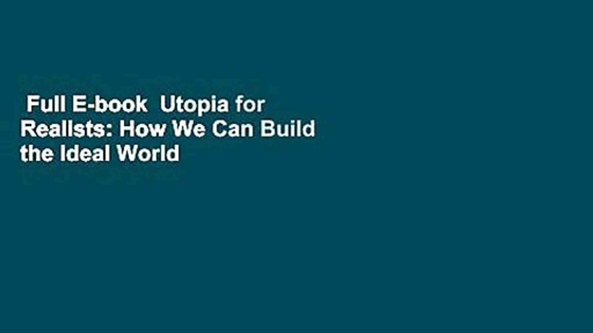 March 27 2018 other editions of this title. Subtitled how we can build the ideal world utopia for realists is an international best seller first published in the netherlands where it ignited a debate and inspired. How we can build the ideal world.