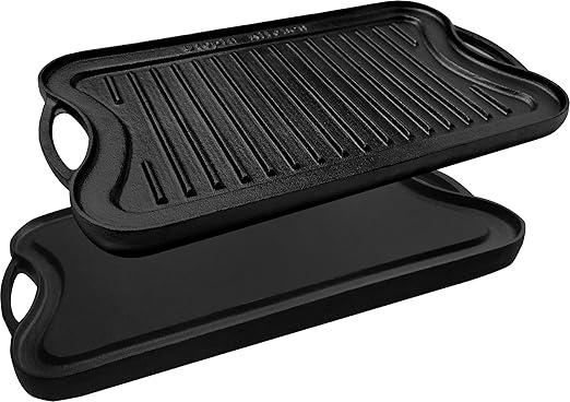 Utopia kitchens cast iron reversible grill griddle 17 inches x 10 inches brings luxury cookware to your kitchen. Perfect for cooking steaks paninis vegetables and. To provide you with a ready to use cast iron skillet all our cast iron cookware pass through factory pre seasoning stage in which soy based oil is used on these high head allowing the polymers to create an initial layer of seasoning.