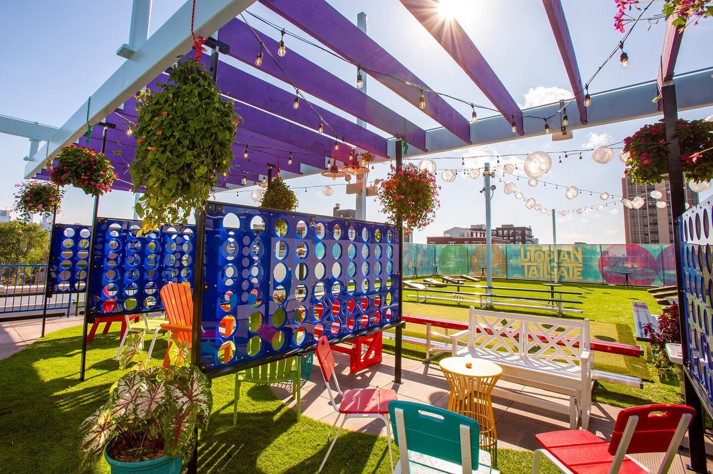 With bars like the berkshire room apogee lounge and the sixth. The 10000 square foot space features psychedelic colors zany games and gourmet spins on food that fans. Located on the roof of pipers alley utopian tailgate is.