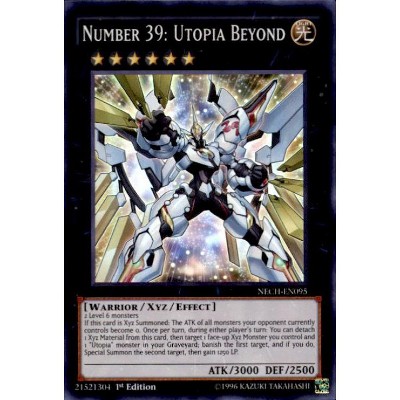 Utopia x1 number c39. The artwork book of kazuki takahashi released on december 2011 revealed that this card originally had the number 3 instead of 39 as the artwork shows 03 on utopias shoulder. The effect that negates the attack is a trigger effect2 neither effect targets2 the xyz material is detached as a cost to activate the effect that negates the attack2 during the attack declaration when the opponent already activated a card like dimensional prison you cannot chain this cards effect2 the effect that destroys itself is a trigger effect2 if number 39.